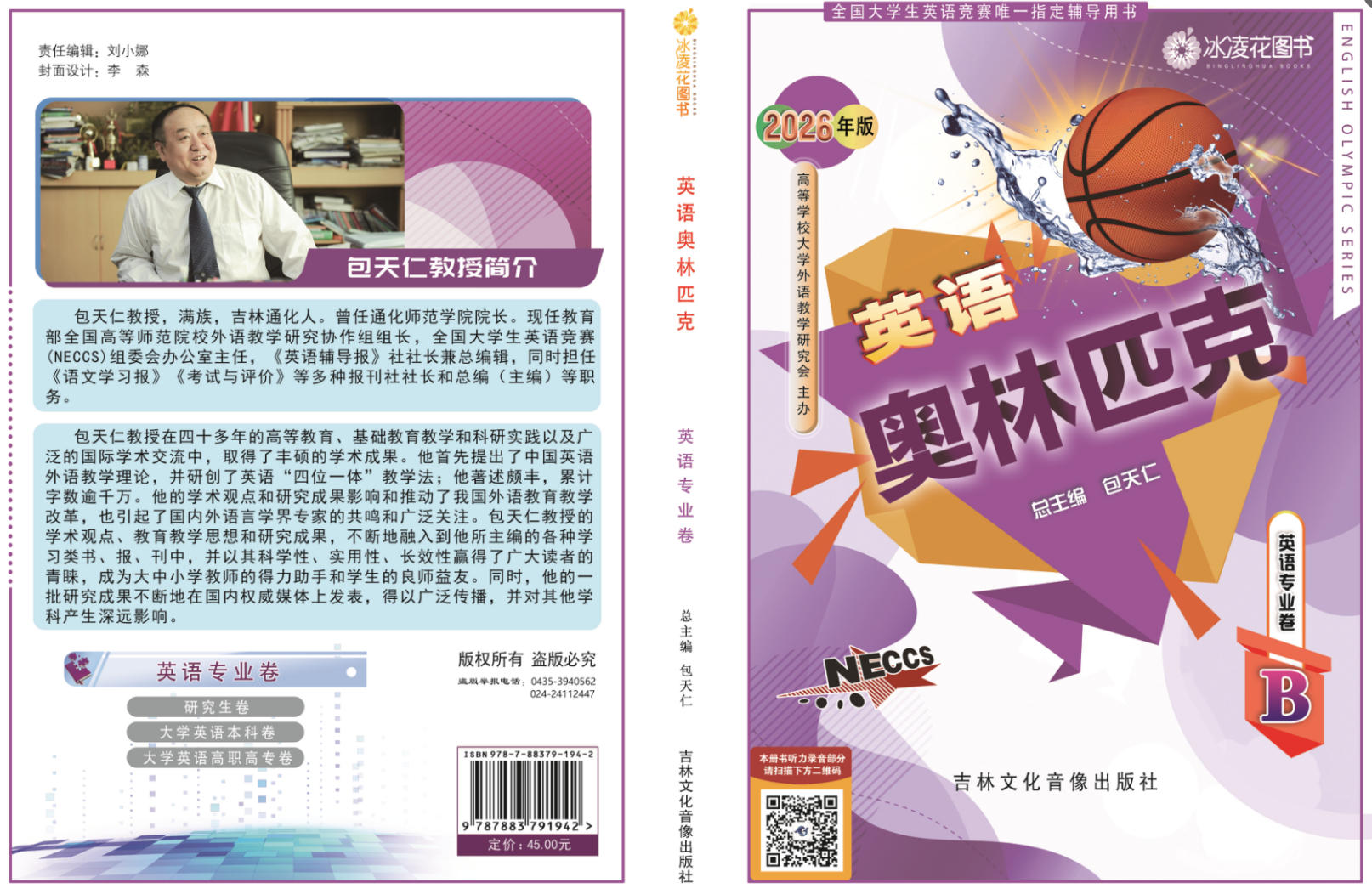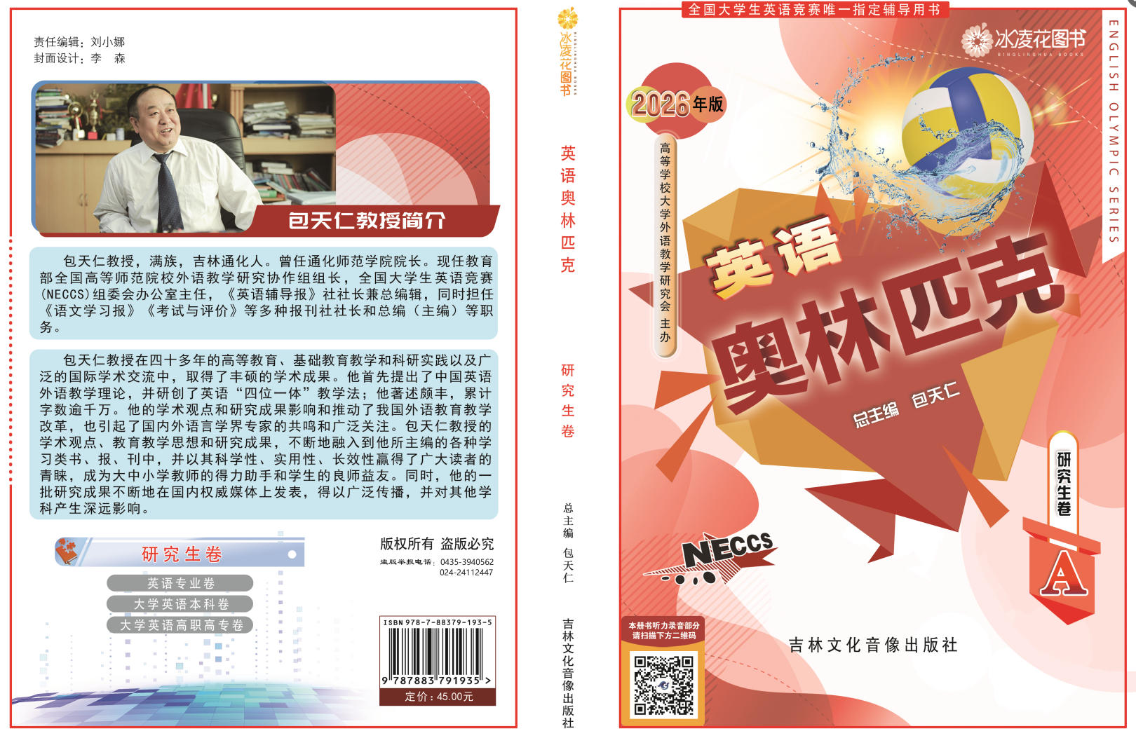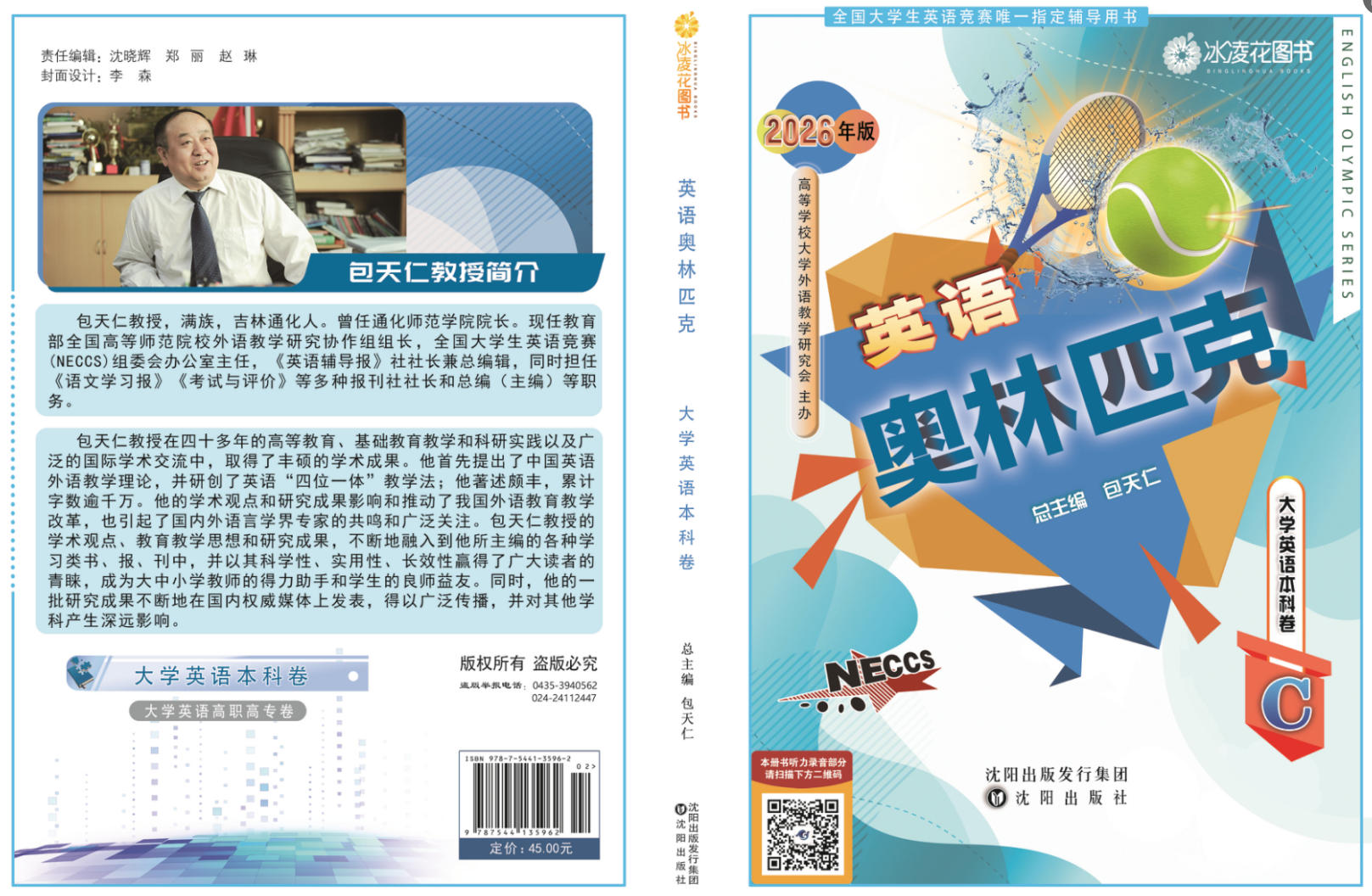 2.2026年新版大学《英语奥林匹克》丛书由包天仁教授任总主编,由沈阳出版社出版,该套丛书包含四个分卷:研究生卷(A类研究生),英语专业卷(B类英语专业本、专科学生),大学英语本科卷(C类非英语专业本科生),高职高专卷(D类体育类和艺术类本科生及非英语专业高职高专类学生)。各卷单册定价均为45.00元,并附赠光盘一张。该套丛书对英语词汇、语法等基础知识作了分类辅导,并配有适量的单项、专项和综合练习,同时还介绍了解答各种竞赛题型的方法、思路,并配有竞赛样题一套及竞赛模拟试题三套。该套丛书不仅是备考全国大学生英语竞赛的参考用书,也是大学生平时英语学习、训练和参加各种国内外英语考试较为理想的参考材料。